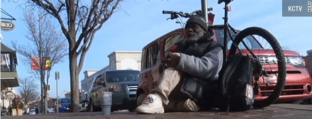 dentro del vaso con el que pedía monedas Billy Ray Harris, quien no tiene hogar