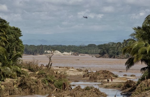 El helicóptero Black Hawk se encontró en una zona cercana a esta población en la que 68 personas permanecen desaparecidas, después de que un alud provocado por las intensas lluvias sepultara numerosas viviendas, reseñó la prensa local.