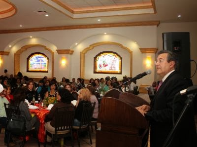 Al rector lo acompañó la presidenta del Comité de Damas Voluntarias, Magdalena González de Flores y el secretario general del sindicato del STUAC, Modesto Rosales Flores; finalmente se rifaron obsequios entre las asistentes.