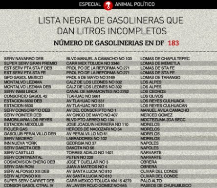 La organización civil Al Consumidor publicó una lista de todas las gasolineras en México que despachan litros incompletos de combustible.