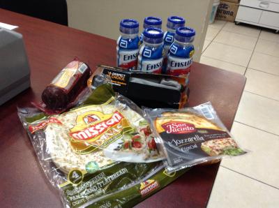 Tras una revisión se le encontraron cinco botellas de suplemento alimenticio en líquido, un paquete de tortillas de harina, un queso mozzarella, un salami ahumado y una memoria flash USB.