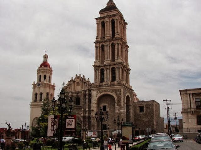 La Catedral de Saltillo se tiñe de rojo con las lluvias de la temporada, ya que sufre escurrimientos desde su cúpula cuyo impermeabilizante de mala calidad ha manchado todas las caras de cantera del edificio.
