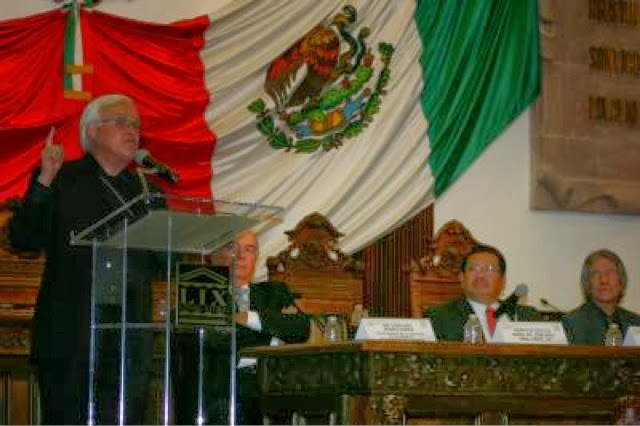 En un hecho histórico por la participación de un jerarca religioso en la tribuna del Congreso, que tiene como antecedente más cercano el de 1810 cuando el sacerdote Miguel Ramos Arizpe fue electo diputado por Coahuila para participar en las Cortes de Cádiz, el Obispo advirtió que México sigue una política pública «conservadora» que genera pobreza y es intolerante a la migración.