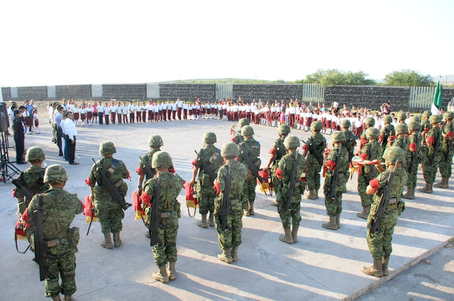 Elementos del 105 Batallón de Infantería participaron con la escolta y banda de guerra para los honores a la bandera, presidió el Alcalde Licenciado Gerardo García, su esposa la Presidenta del DIF Monclova Licenciada Ana Patricia Esquivel Ibarra, en representación del Subdirector de Servicios Educativos se hizo presente el licenciado Juan José Castro y en representación del Comandante del 105 Batallón, estuvo el Capitán Primero Ángel Núñez.