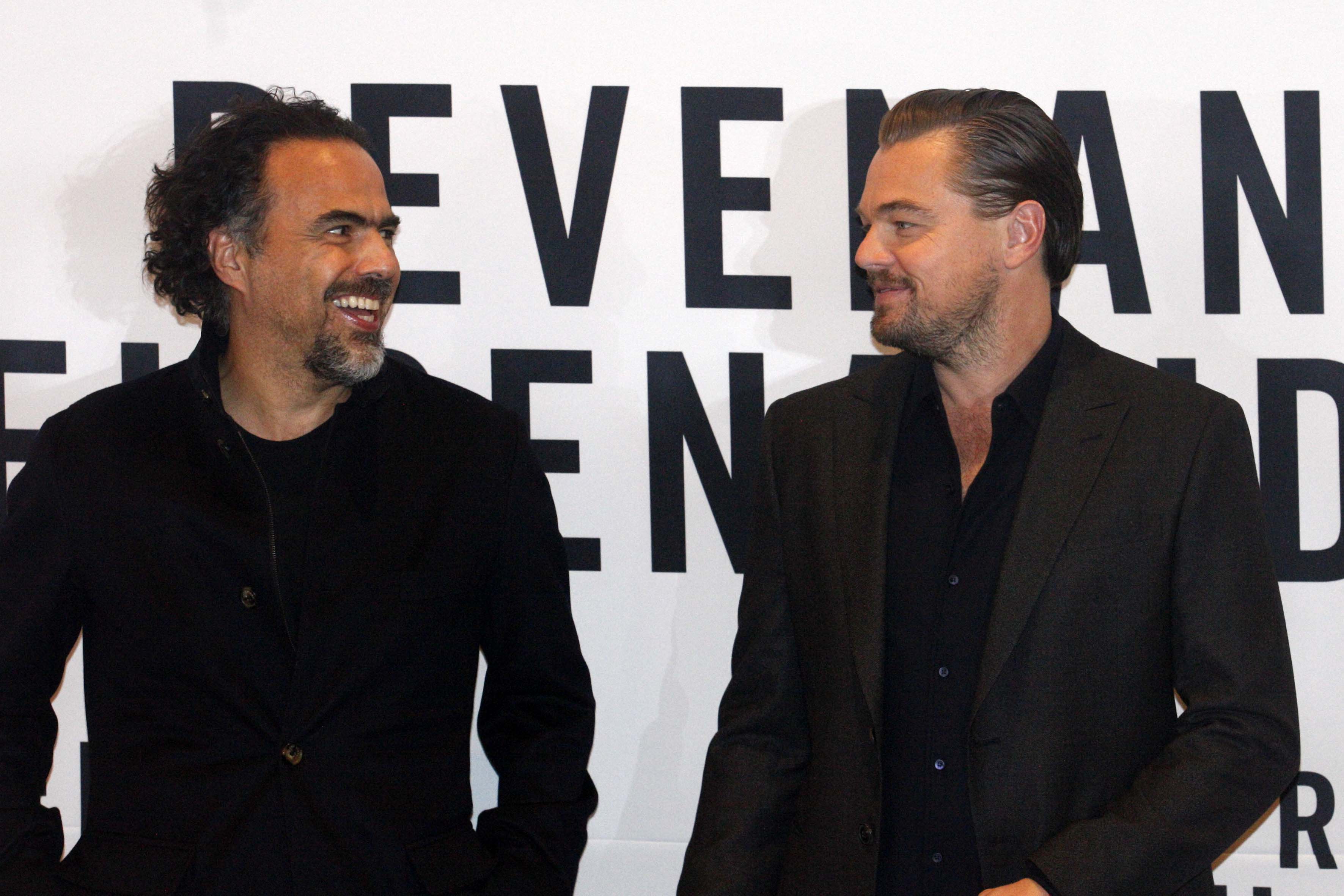 MÉXICO, D.F. Cinema/Cine-“The Revenant”.- El director mexicano Alejandro González Iñárritu y el actor estadounidense Leonardo DiCaprio presentan la película “The Revenant”, el martes 26 de enero de 2016 en la Ciudad de México. El filme está nominado al Premio Oscar 2016 en las categorías de Mejor Película, Mejor Director y Mejor Actor, entre otras.