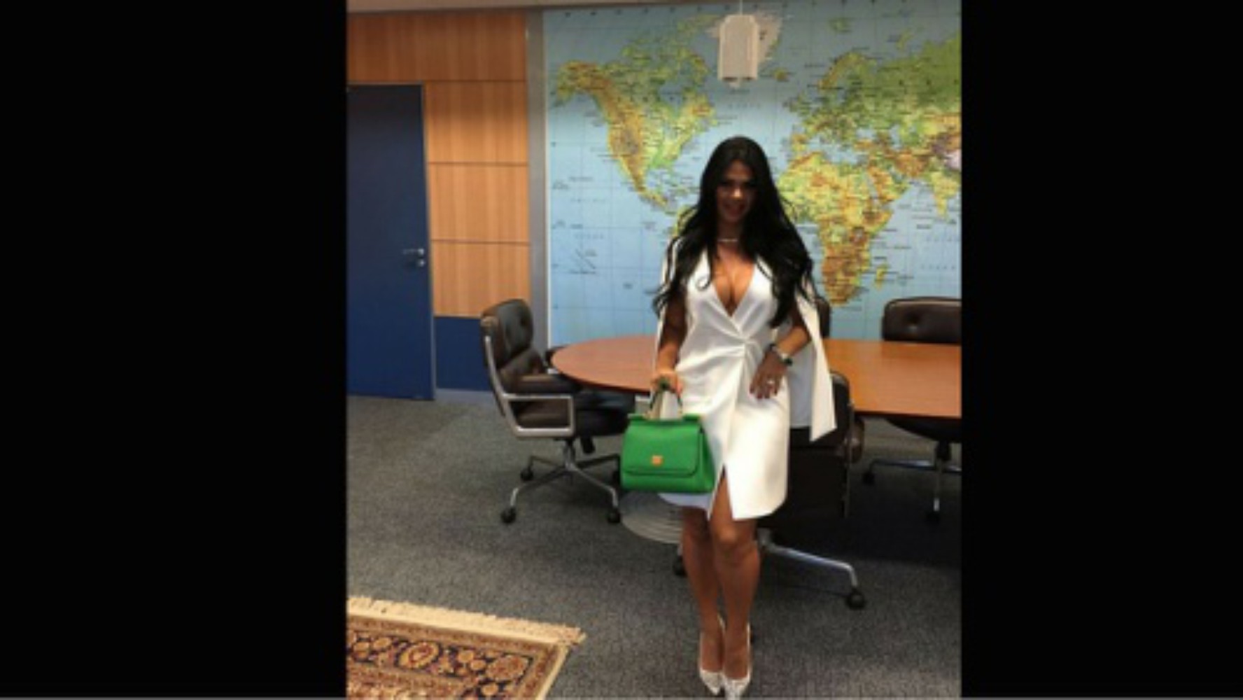 Milena Santos, quien fue nombrada en Miami Miss Bumbum (trasero) 2013, divulgó en su perfil de Facebook fotos posando en el despacho del Ministerio de Turismo, cartera que ahora ocupa su marido, Alessandro Golombiwsk Teixera.