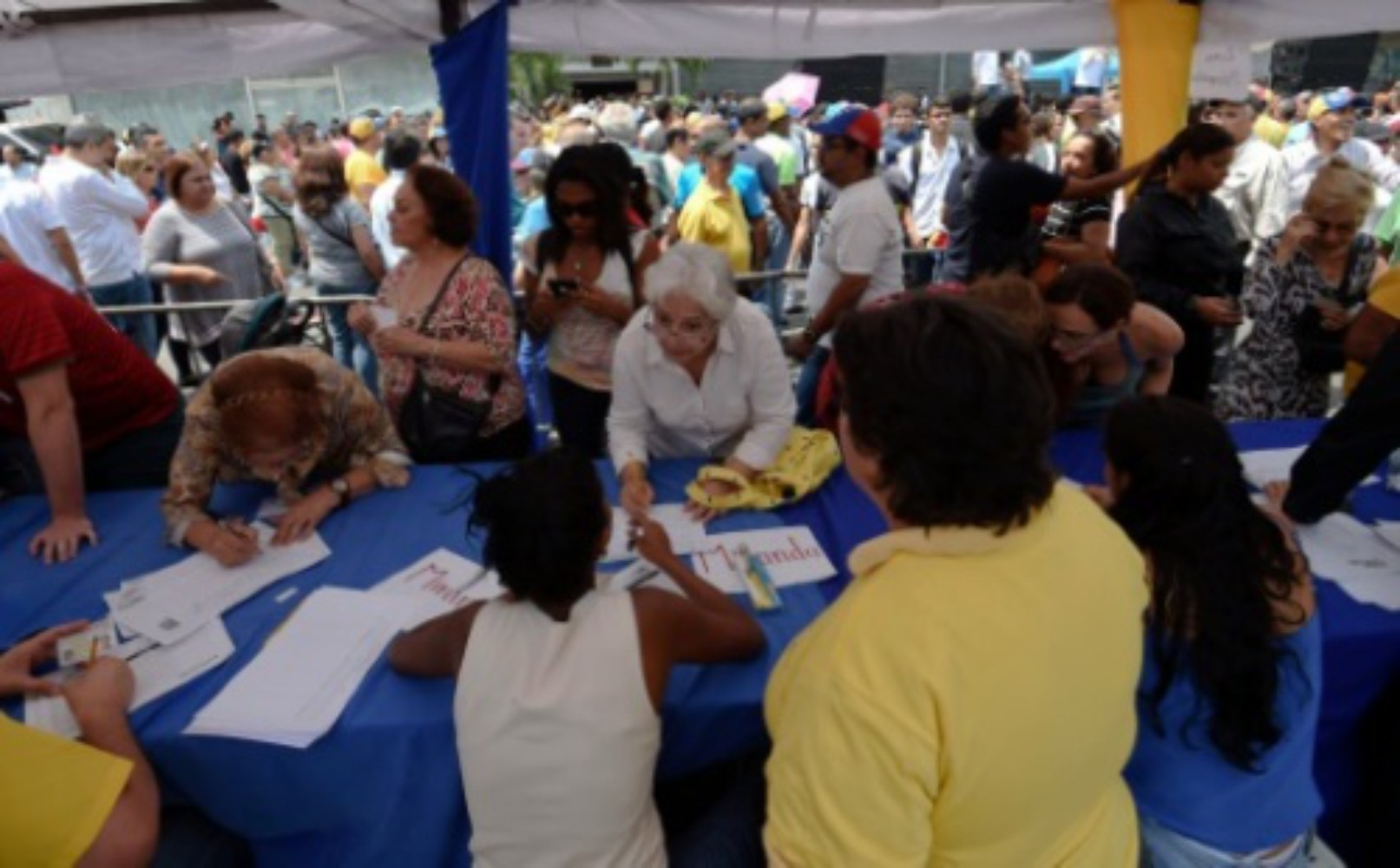 Empeñada en sacarlo del poder, la oposición, mayoría en el Parlamento, recoge las poco más de 195.721 firmas que activarán el referendo, tras ser autorizada el lunes a hacerlo por el Consejo Nacional Electoral (CNE), acusado por la oposición de aliado del gobierno.