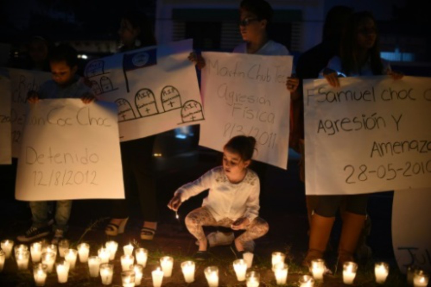 Guatemaltecos manifetando frente a la embajada de Belice en Ciudad de Guatemala el 25 de abril de 2016 tras el asesinato de un adolescente guatemalteco cerca de la frontera entre los dos países (AFP | Johan Ordoñez)Más
