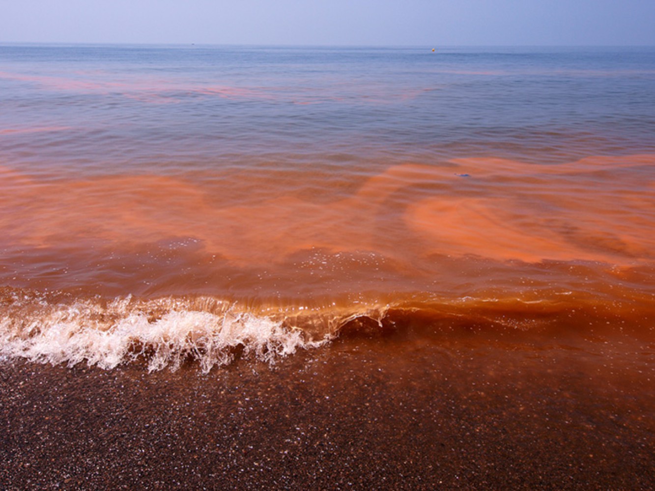 La marea roja es una excesiva proliferación de microalgas, específicamente dinoflagelados, en los estuarios o el mar, causada por diferentes tipos de algas presentes en número elevado.