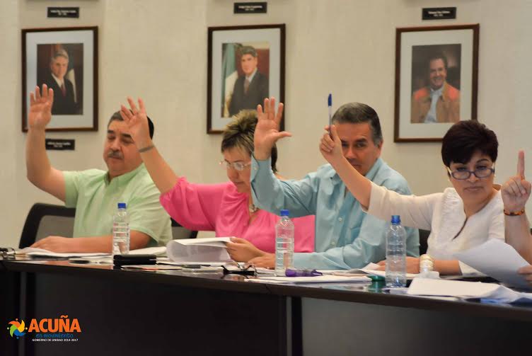 Acuña, Coah., Con la presencia de 19 de sus 20 miembros, se celebró Primera Sesión Ordinaria de Cabildo del mes de mayo de 2016, en la que llegaron a 7 acuerdos por unanimidad y 3 por mayoría, misma que presidió el Alcalde Evaristo Lenin Pérez Rivera.
