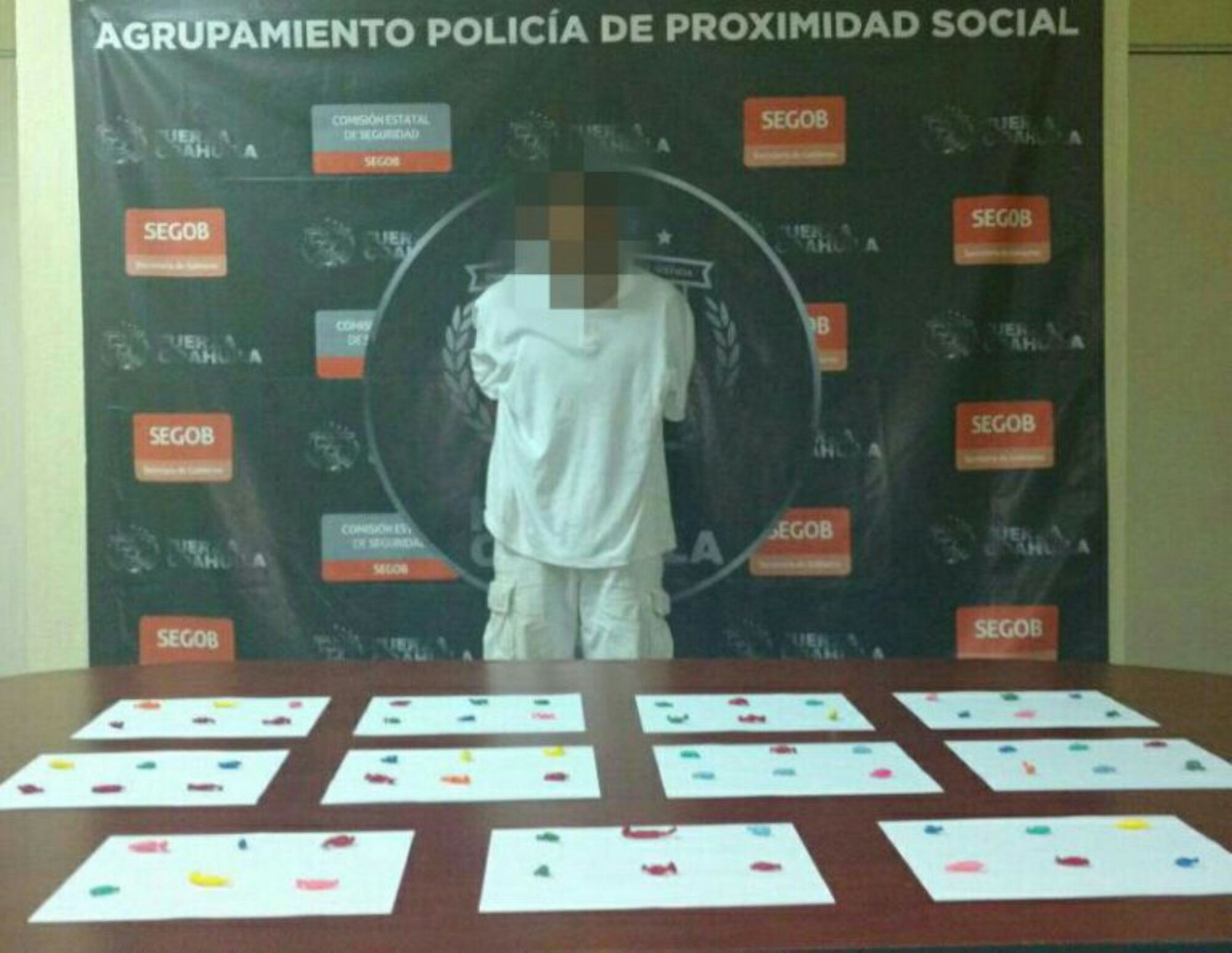 Piedras Negras.-Por el delito de posesión de narcóticos, una persona del sexo masculino, fue detenido por elementos de Fuerza Coahuila, luego de asegurarle 67 dosis de esta droga, dentro de globos de diversos colores.