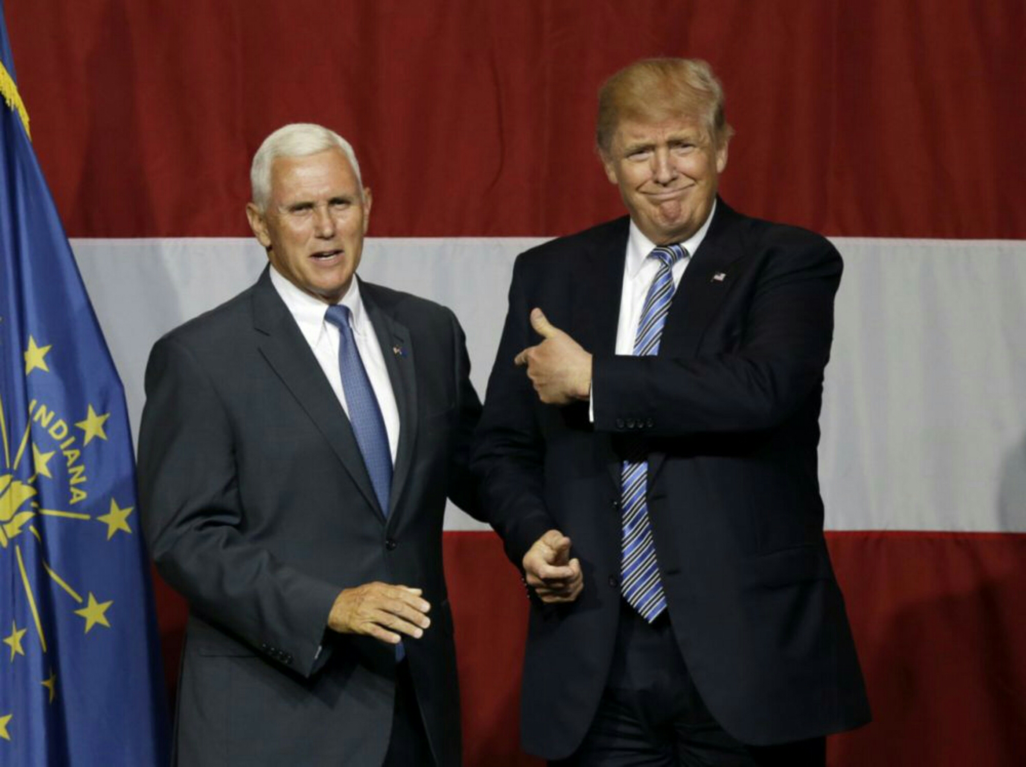 El virtual candidato presidencial republicano Donald Trump y su elegido para ser candidato a vicepresidente, el gobernador de Indiana Mike Pence. (AP)