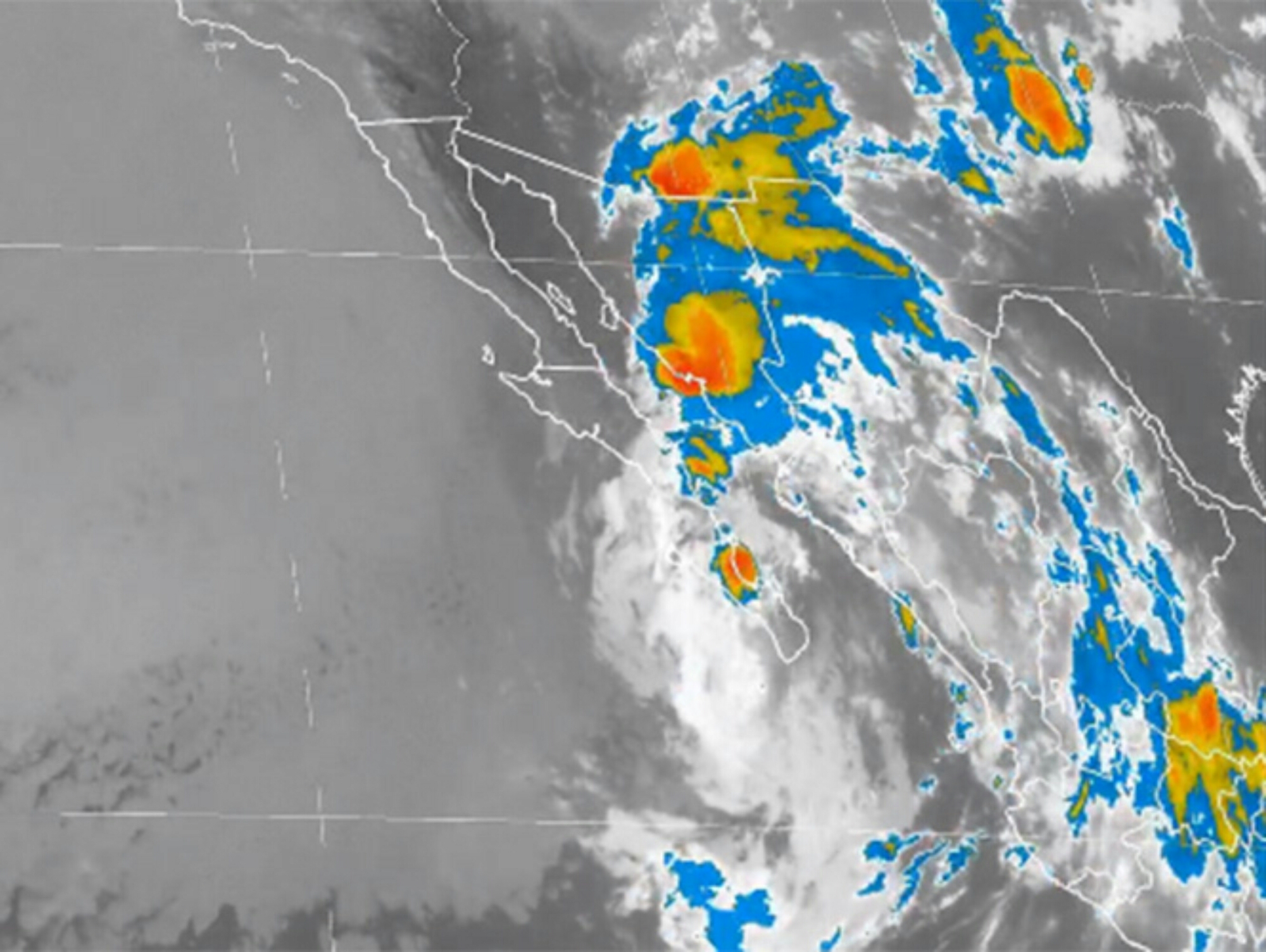 La naranja continúa en el sur de Baja California y en el centro de Baja California Sur; la amarilla en el centro de Baja California y occidente de Chihuahua, sur de Baja California Sur y norte de Sinaloa.