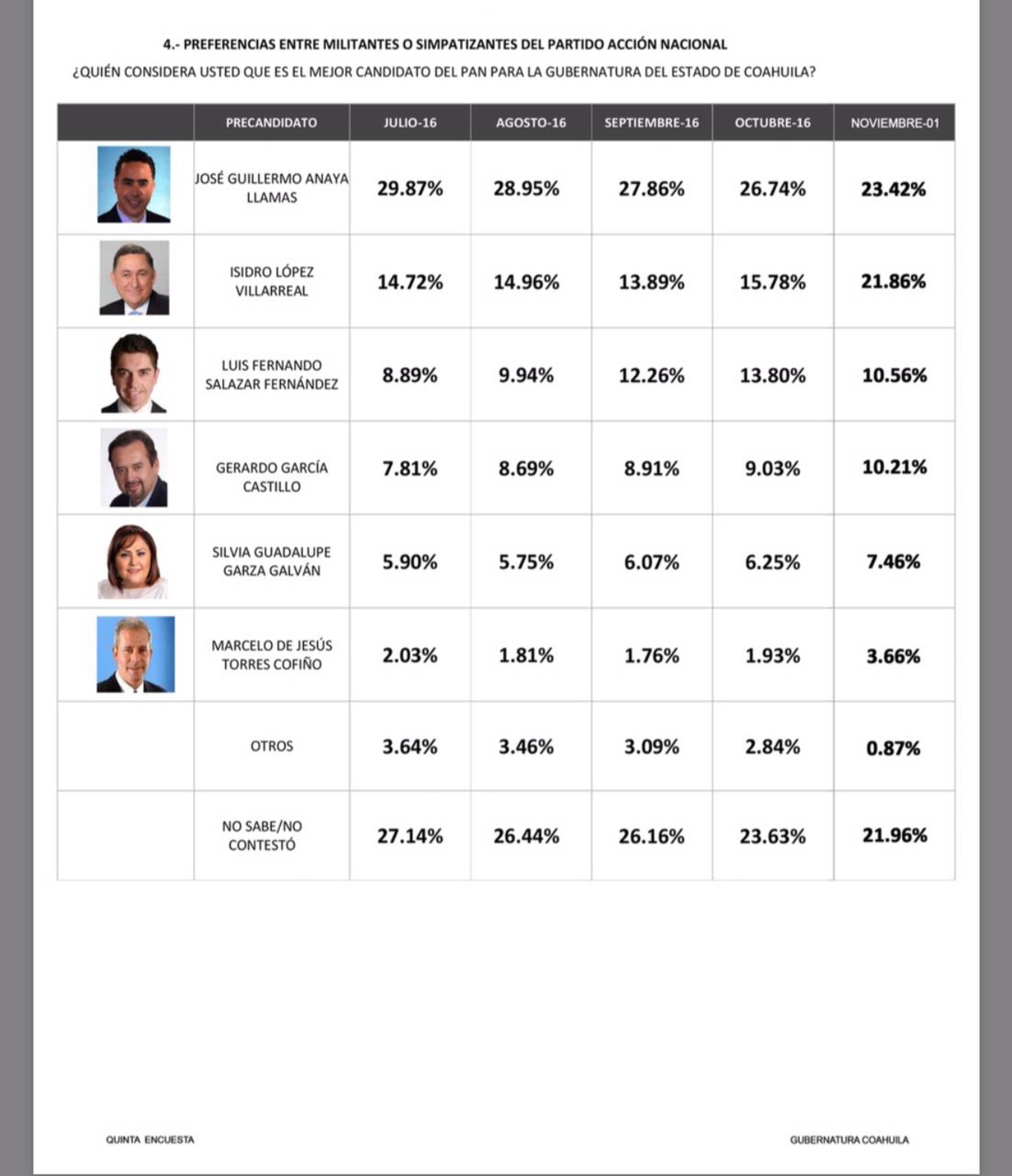 Periodico acceso realizó un sondeo para ver las preferencias electorales rumbo al 2017 para ver quien tiene las mayores posibilidades de abanderar al Partido Acción Nacional. Se tomo un muestreo telefónico de 1000 llamadas al asar por todo el Estado, con un margen de +/- 5 de margen de error.