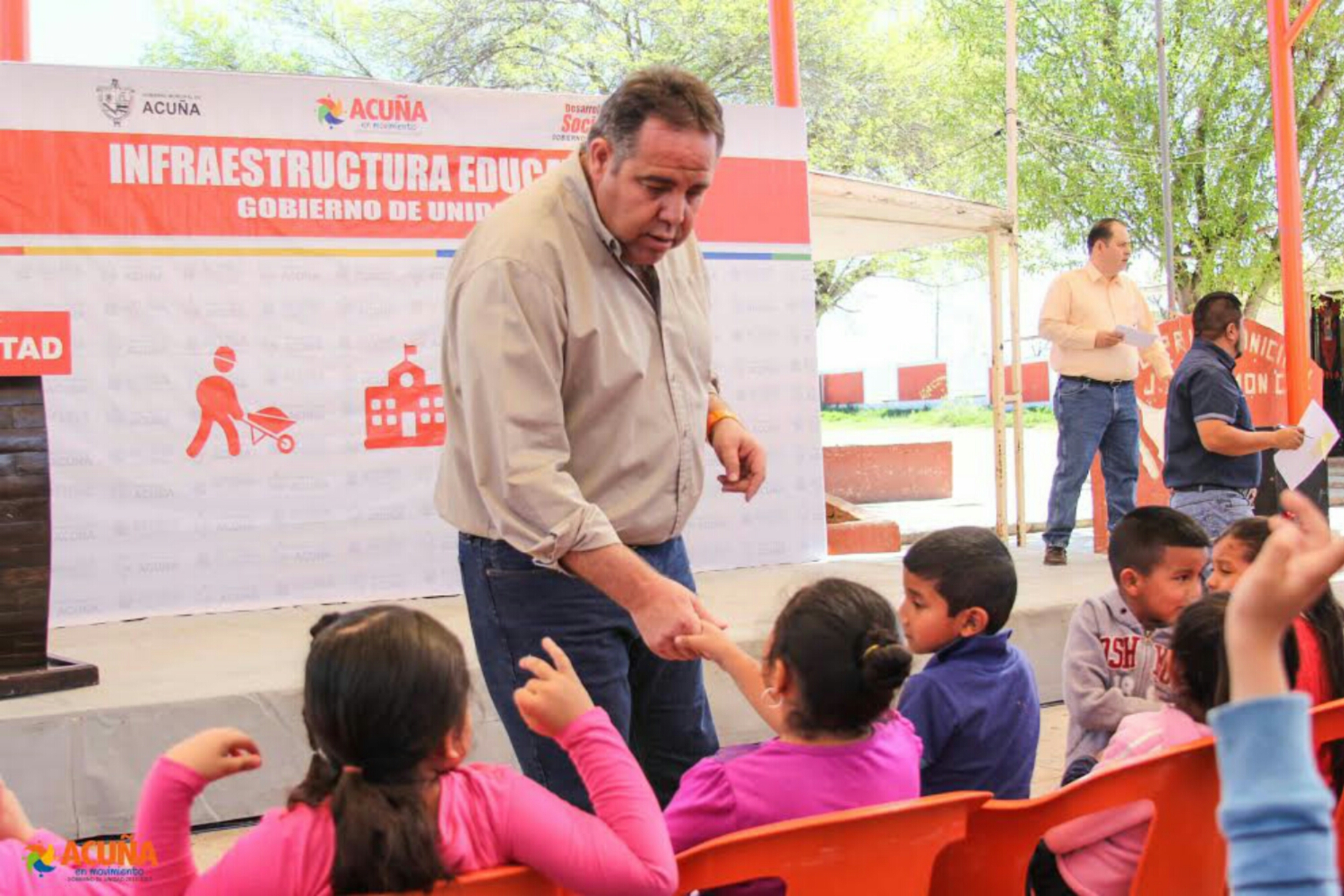 Acuña, Coah., En cumplimiento al compromiso contraído con alumnos, padres de familia y profesores de la Escuela Primaria Jesús María Ramón, de la colonia Aeropuerto, la Administración Municipal, a través de la Dirección de Desarrollo Social, entregó obra de techumbre en beneficio de 550 estudiantes.