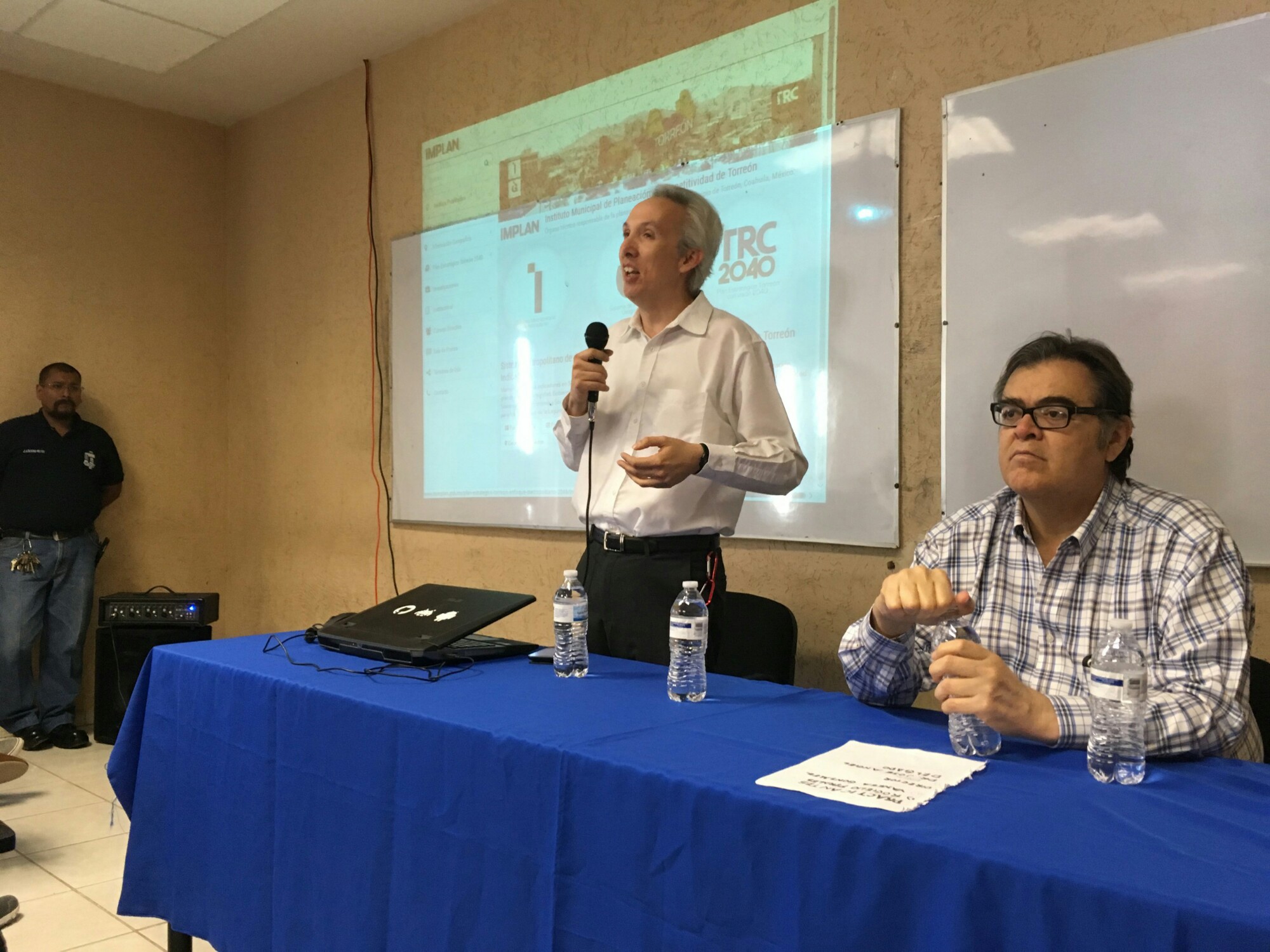 Guillermo Valdés, responsable de programación del IMPLAN, mostró a los asistentes la diversidad de mapas que pueden encontrar en este sitio como el de Zonificación Secundaria, Mapa de Parques Industriales, de Relleno Sanitario, Ámbito Regional de la Zona Metropolitana de La Laguna, entre otros. Asimismo se les invitó a conocer el documento del Plan Estratégico para Torreón TRC 2040, disponible en la plataforma para su descarga.