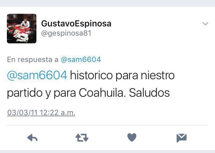 «Hoy sabemos que a pesar de que lo ha negado en repetidas ocasiones, el consejero electoral Gustavo Alberto Espinosa ha participado activamente en campañas electorales del PRI, tal y como así lo acreditan diversas notas y sus propias publicaciones en redes sociales. Esto es totalmente inaceptable y una prueba más de que en Coahuila se pretende llevar a cabo una elección de Estado», señaló Ricardo Anaya en una entrevista a Radio Formula.