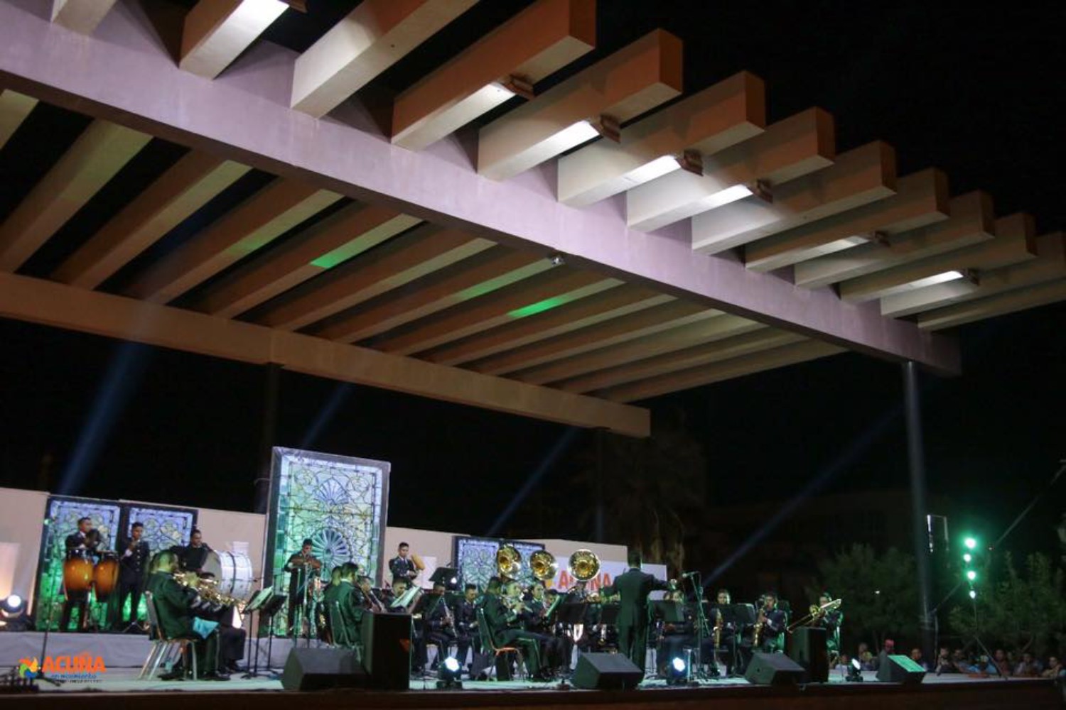 Acuña, Coah. En el marco de los festejos conmemorativos al centenario de la promulgación de la constitución, y a casi cuatro años de haberse constituido, majestuosa ofreció concierto a los acuñenses la Banda de Música Militar de la Onceava Región, que dirigida por Álvaro Ángeles García, sus 42 elementos, de éstos 5 mujeres, con maderas, metales y percusiones, deleitaron a los asistentes con música clásica, mexicana y popular, abriendo su intervención con la marcha Emblema Nacional, para continuar con el Huapango Moncayo, popurrí homenaje a México y La Conquista del Paraíso.