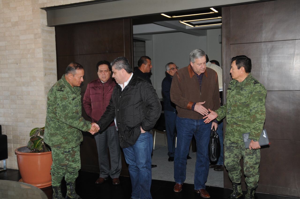 Con la presencia de Jorge Zermeño Infante, Presidente Municipal de Torreón; Gerardo Márquez Guevara, Fiscal General en el estado; General Francisco Ortega Luna, Comandante de la Sexta Zona Militar; General Arturo Coronel Flores, Mando Especial de La Laguna, así como José María Fraustro Siller, Secretario de Gobierno, sostuvieron reunión en la que evaluaron los indicadores de seguridad de la región y del estado en general.