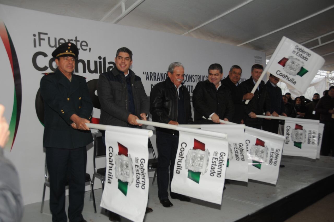 En compañía de los alcaldes de Monclova y Frontera: Alfredo Paredes López y Florencio Siller Linaje y el Comandante del 105 Batallón de Infantería, Coronel Óscar Zavala Barrera, dio el banderazo oficial para el arranque de la continuación de obras del Libramiento Carlos Salinas de Gortari.