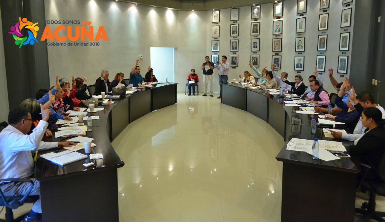 Acuña, Coah.- En segunda sesión ordinaria de cabildo de febrero, a la que asistieron sus veinte integrantes, y que presidió el Alcalde Roberto de Los Santos Vázquez, por unanimidad llegaron a los siguientes acuerdos: