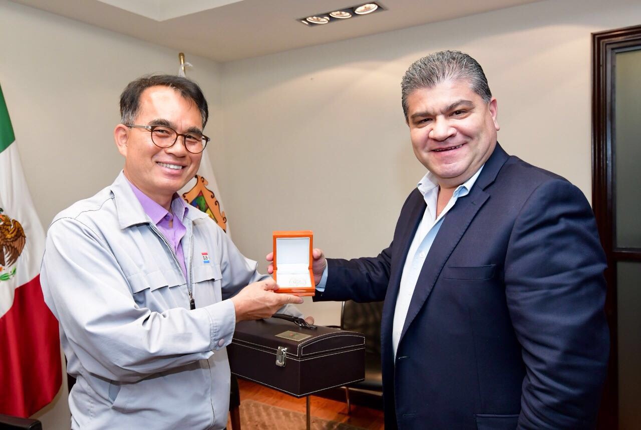 Arteaga, Coahuila de Zaragoza; 01 de marzo de 2018.- El Gobernador Miguel Riquelme y el Alcalde Everardo Durán Flores, junto con el Secretario de Economía y Turismo, Jaime Guerra Pérez así como Unsoo Kim, Presidente de Sangsin Brake; Sang ha Park, anunciaron una inversión de 65 millones de dólares, así como la creación de 400 empleos, con la instalación de la empresa de origen coreano Sangsin Brake, líderes en sistemas de frenos, misma que se ubicará en el municipio de Arteaga.