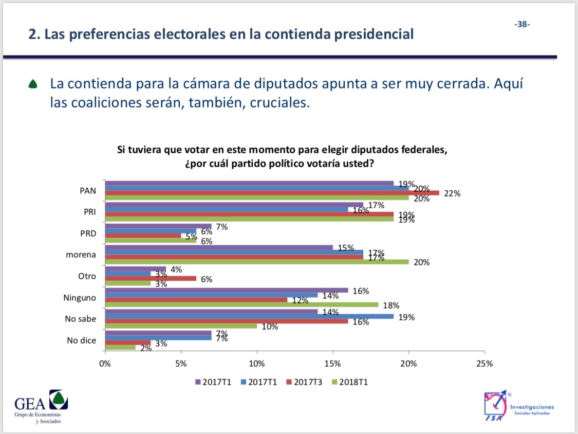 Durante 2018 GEA e ISA harán una presentación mensual de marzo a junio, a fin de dar seguimiento puntual a la evolución de las preferencias electorales y al análisis de la gobernabilidad con base en los distintos resultados posibles.