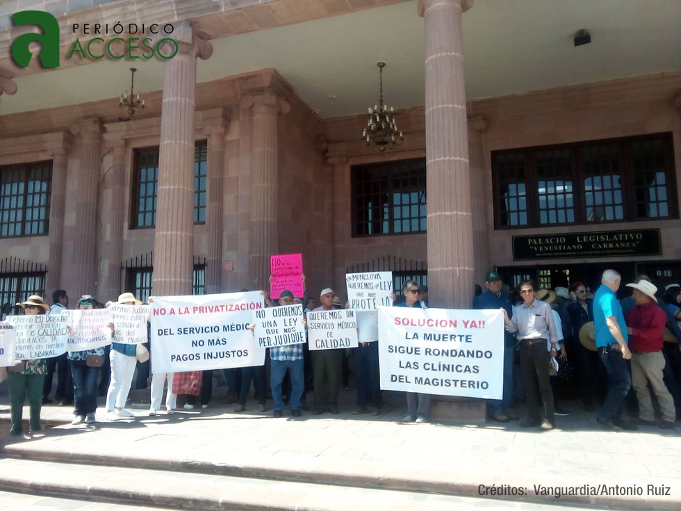 Un grupo de más de 300 integrantes de la Coalición de Trabajadores de la Educación de Coahuila presentaron este martes al mediodía ante el Congreso del Estado una iniciatva de reformas a las Leyes de la Dirección de Pensiones y el Servicio Médico de la Sección 38 del SNTE y se derogue el pago del 10 por ciento de las cuotas económicas a dichas instituciones.