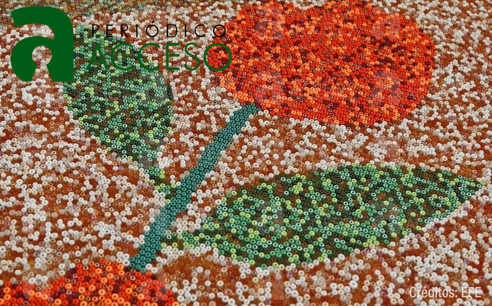 Indígenas wixárikas —conocidos en español como huicholes— del estado de Jalisco impusieron un récord Guinness al mosaico de chaquiras más grande del mundo, con un mural de 81.55 metros cuadrados y dos toneladas de peso.