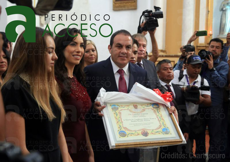 El «Cuauh» rindió protesta de ley alrededor de las 11:00 horas ante el Legislativo morelense, cuya sesión se trasladó a la explanada del zócalo de Cuernavaca. Atestiguaron el protocolo Olga Sánchez Cordero, próxima secretaria de Gobernación y el actual secretario de Desarrollo Social, Eviel Pérez Magaña.