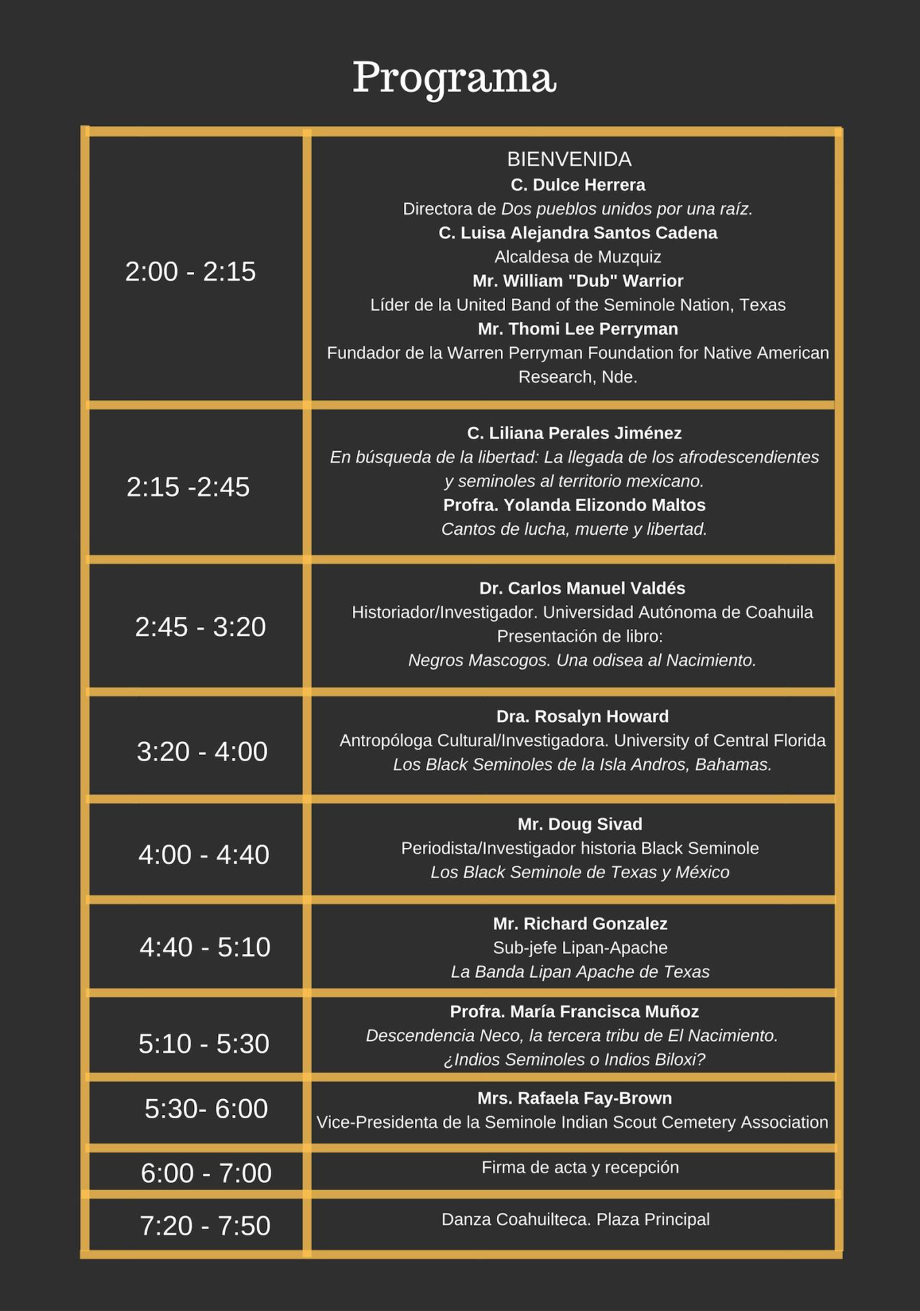 comunicación para que nos acompañen al magno evento Black Seminoles de