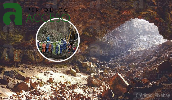 Los equipos deben despejar el agua del área antes de poder proceder al rescate de las personas atrapadas en la mina vertical