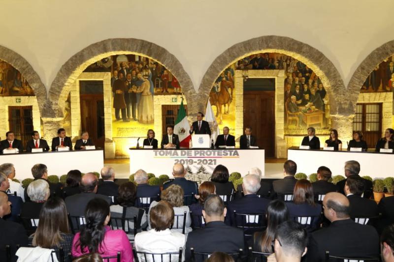 En representación del gobernador del estado, Miguel Ángel Riquelme Solís, el Secretario de Gobierno, José María Fraustro Siller, mencionó que en el gobierno estatal están convencidos que la gestión municipal de Manolo Jiménez, respaldado por el Ayuntamiento, el Cabildo y junto con los habitantes de Saltillo, será de mayores logros.