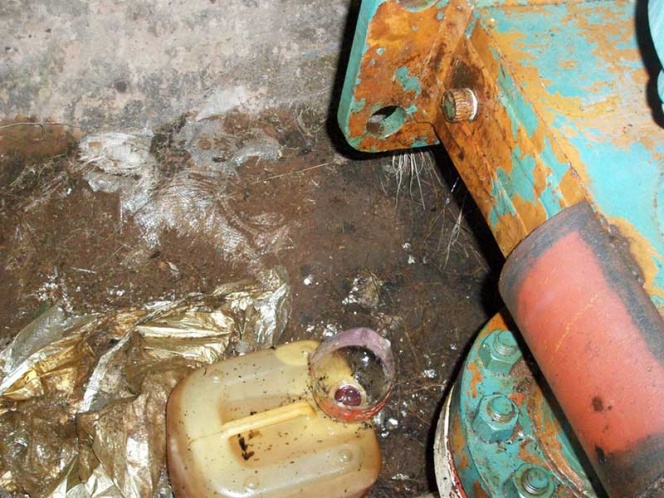 En el sitio encontraron un bidón de 20 litros con el cuello de una botella en la parte superior y un goteo de combustible que provenía de un tapón de bronce que forma parte de la estructura de la misma válvula, el cual había sido removido para extraer combustible.