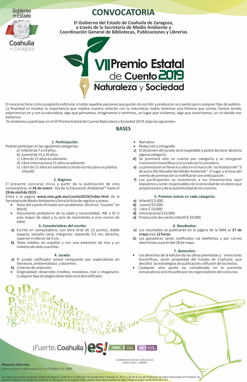 Todos los interesados deberán ingresar a la dirección electrónica: www.sma.gob.mx/cuento2019/