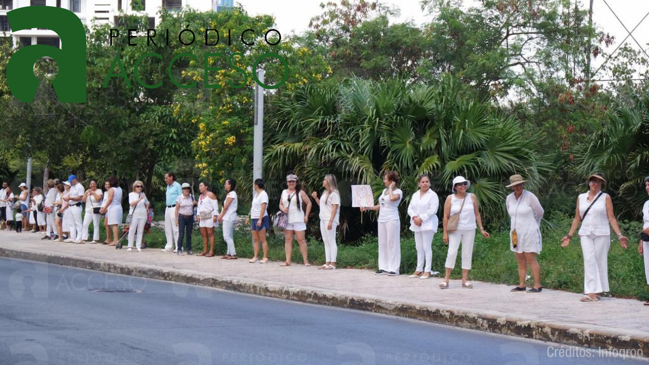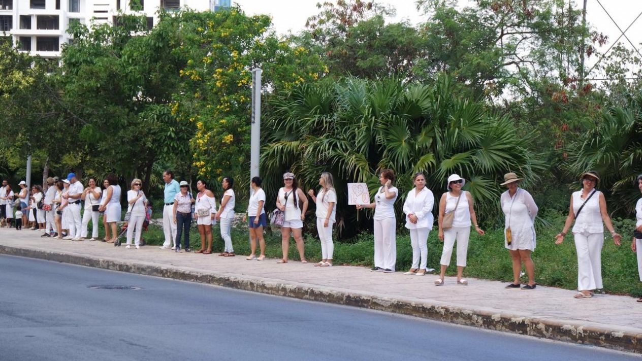 Alrededor de 300 personas realizaron este domingo una cadena humana para pedir por la Paz y la Seguridad en la avenida Bonampak de Cancún.
