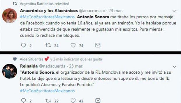 Entre los señalados figuran el escritor Carlos Velázquez, de Torreón, y Antonio Sonora, de Monclova, ambos a cargo de eventos culturales con acusaciones sobre acoso y usar su puesto para convencer a aspirantes de acompañarlos a sus habitaciones de hotel.