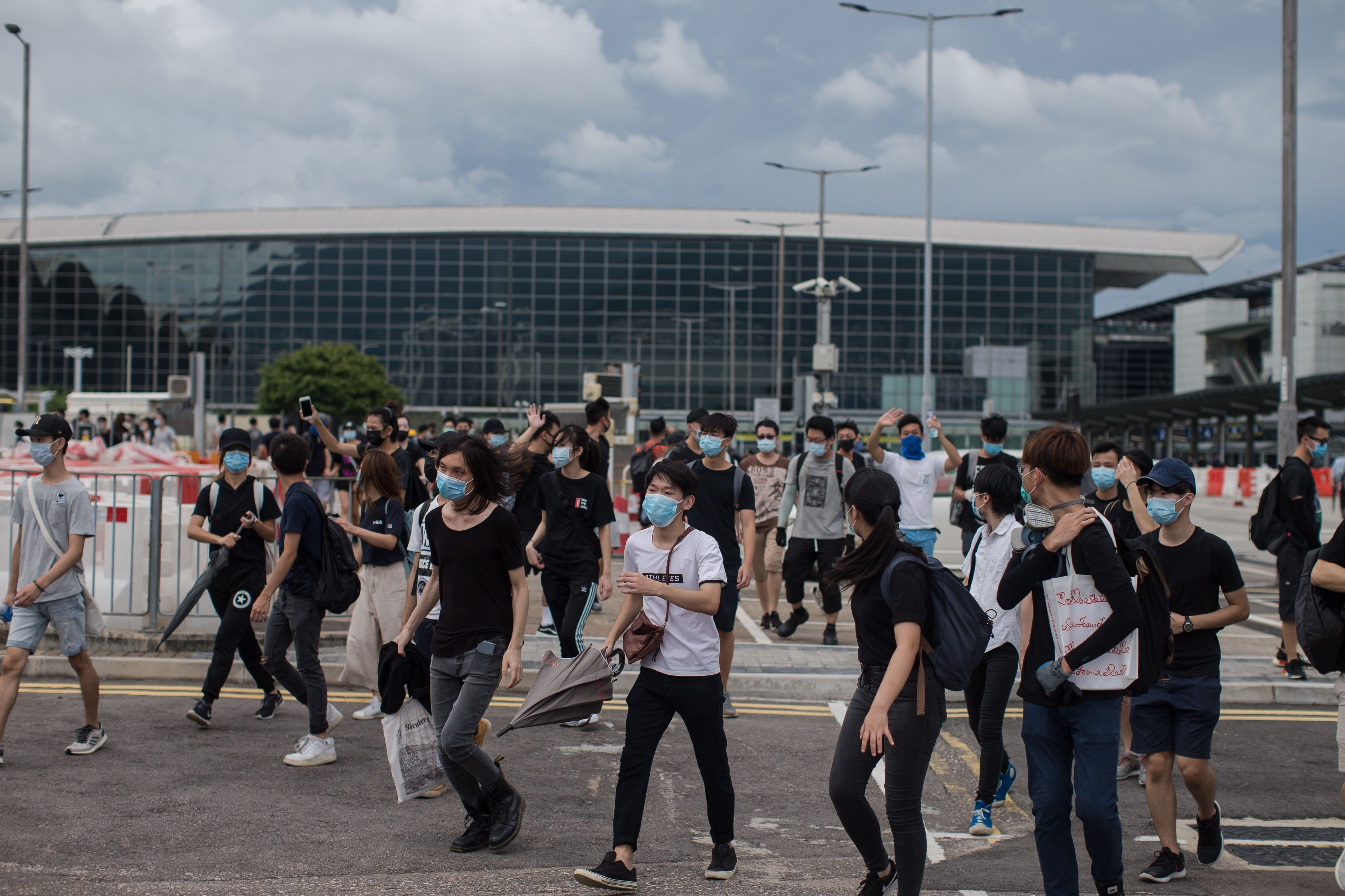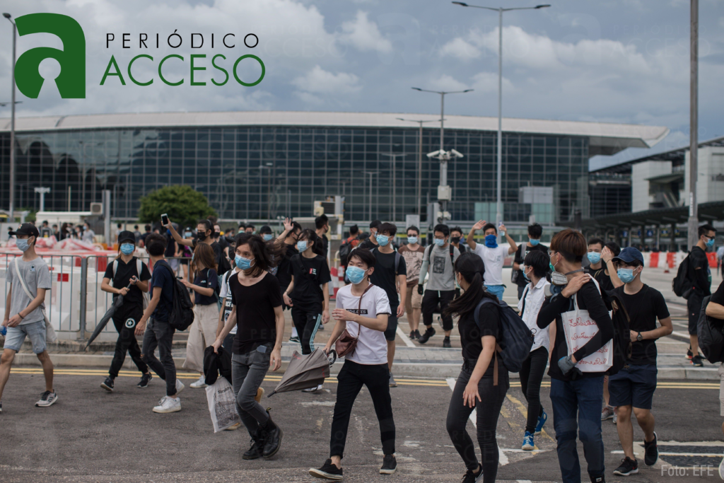 Las protestas de este domingo buscaron entorpecer el tráfico hacia el aeropuerto de Hong Kong, uno de los más concurridos de Asia y donde las manifestaciones lograron la cancelación de casi mil vuelos a mediados de agosto.