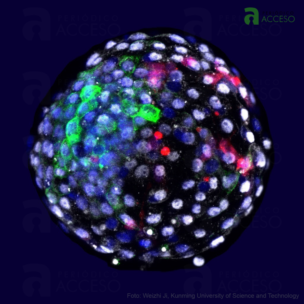 Para llevar a cabo los experimentos actuales, el equipo marcó células madre reprogramadas pluripotentes humanas -capaces de convertirse en todo tipo de células del cuerpo- con una proteína fluorescente y las insertó en embriones de macacos en placas de ensayo.