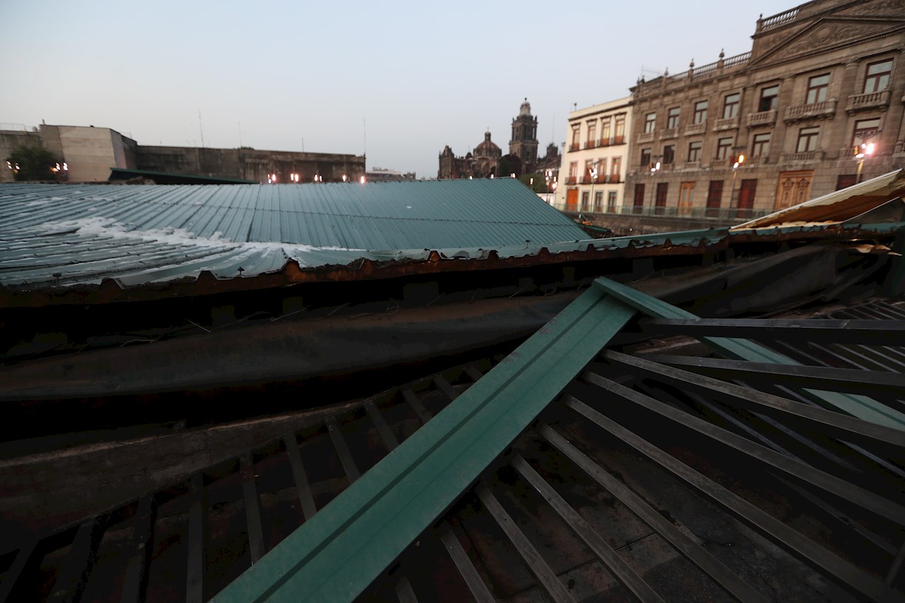 El presidente informó que la Secretaría de Cultura y el Instituto Nacional de Antropología e Historia (INAH) «desde anoche están trabajando para ver si no hubo daños» después de la tormenta que azotó anoche a la capital del país y cubrió de granizo las calles del Centro Histórico.
