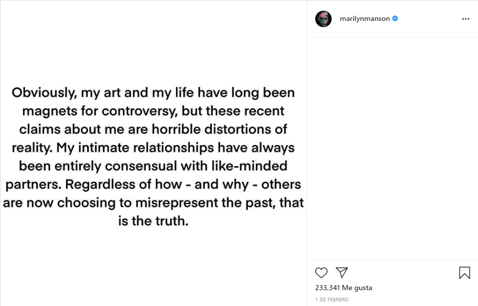 Manson enfrenta, por otro lado, acusaciones de abusos sexuales por la actriz Evan Rachel Wood, quien fuera su pareja durante un tiempo, y por otras cuatro mujeres.