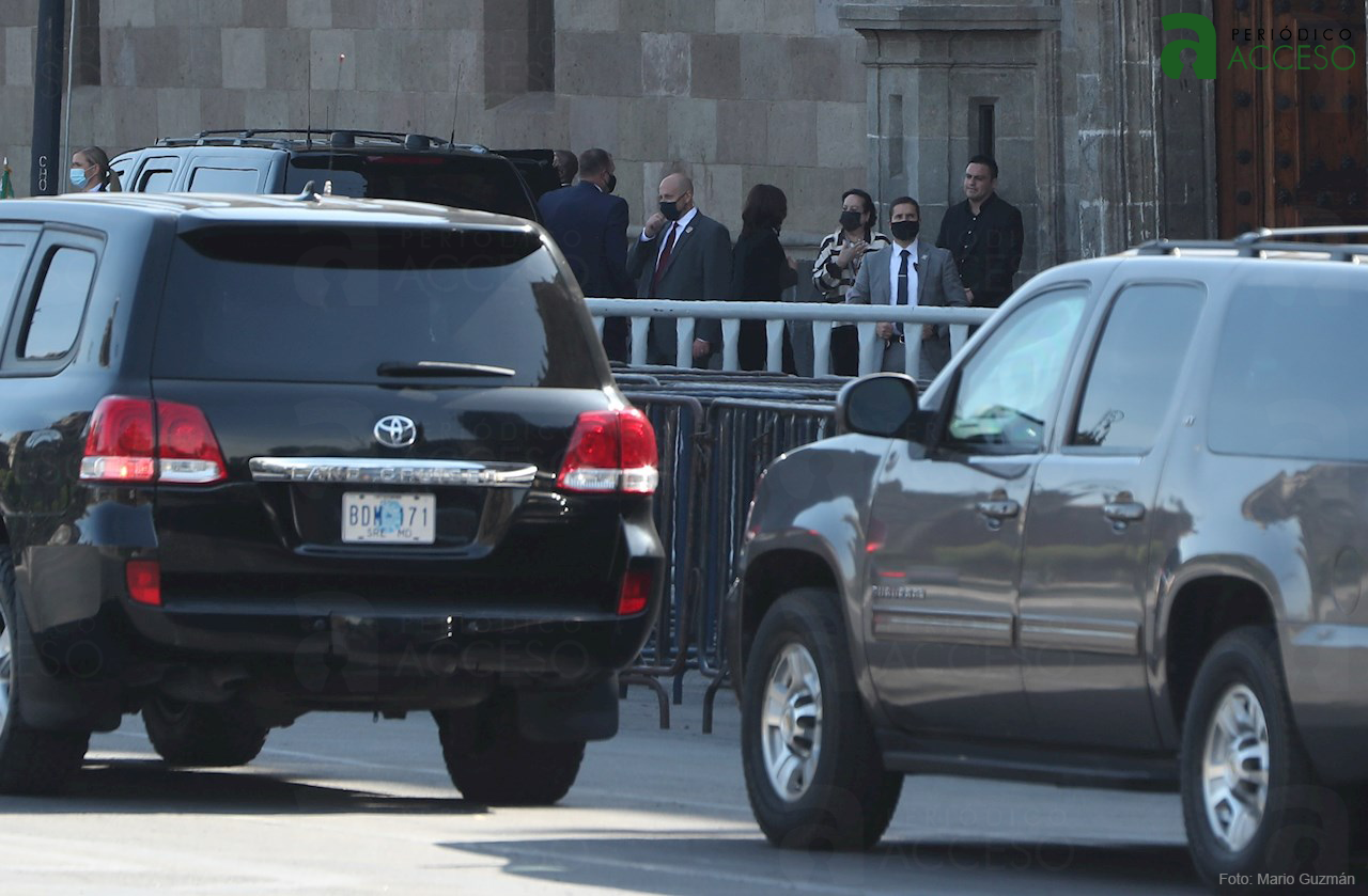 Harris arribó a las 9.59 hora local, en medio de un fuerte dispositivo de seguridad, a la sede presidencial, donde fue recibida por el mandatario mexicano.