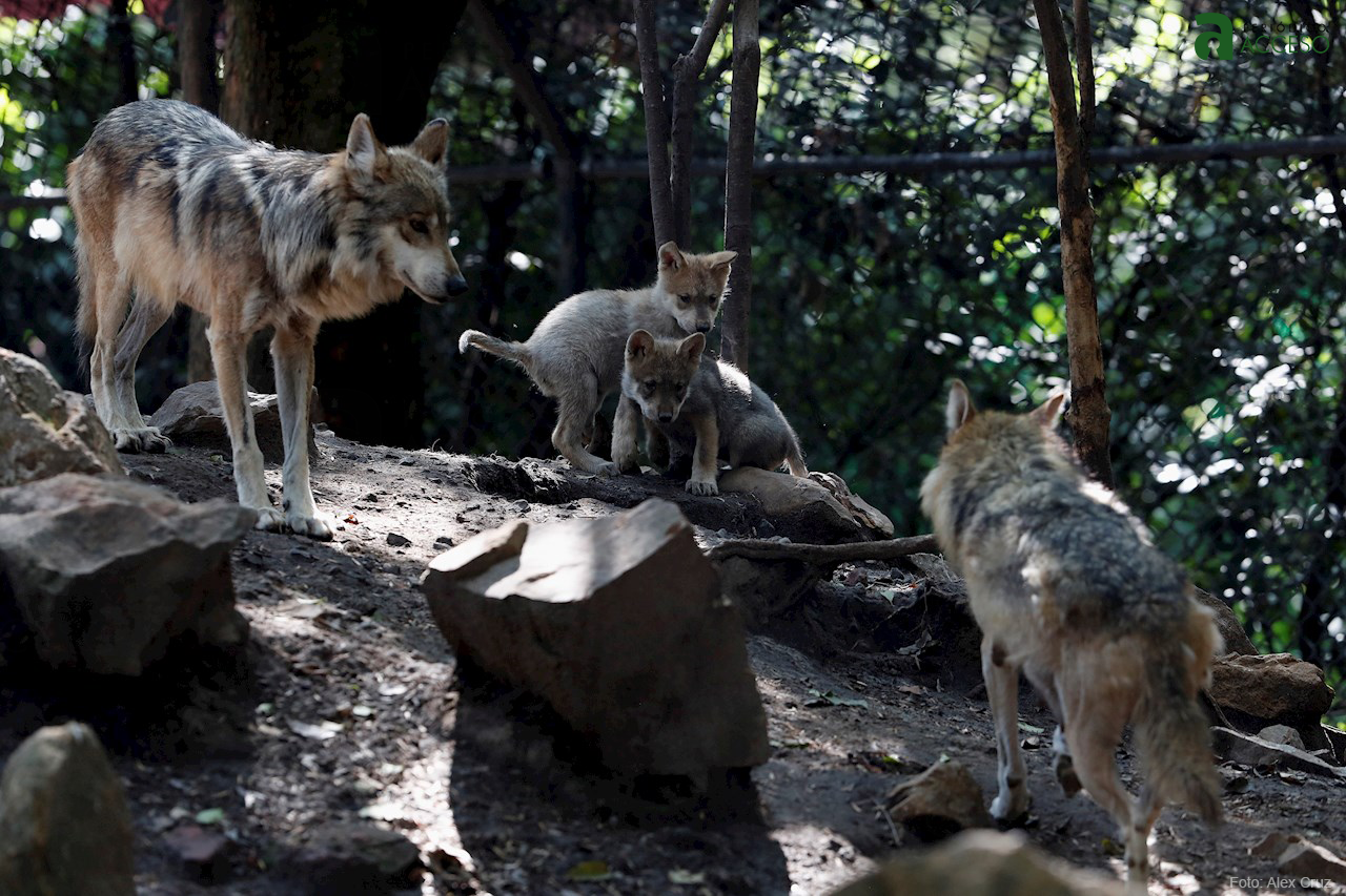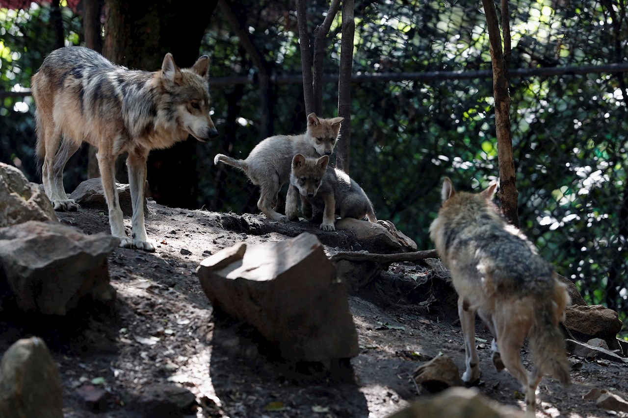 Los lobeznos, cada uno con diferentes combinaciones en su característico pelaje grisáceo y beige, corren en círculos, saltan y siguen a sus padres, ajenos a que gracias a su nacimiento se dio un paso más para la conservación de esta especie en peligro de extinción.