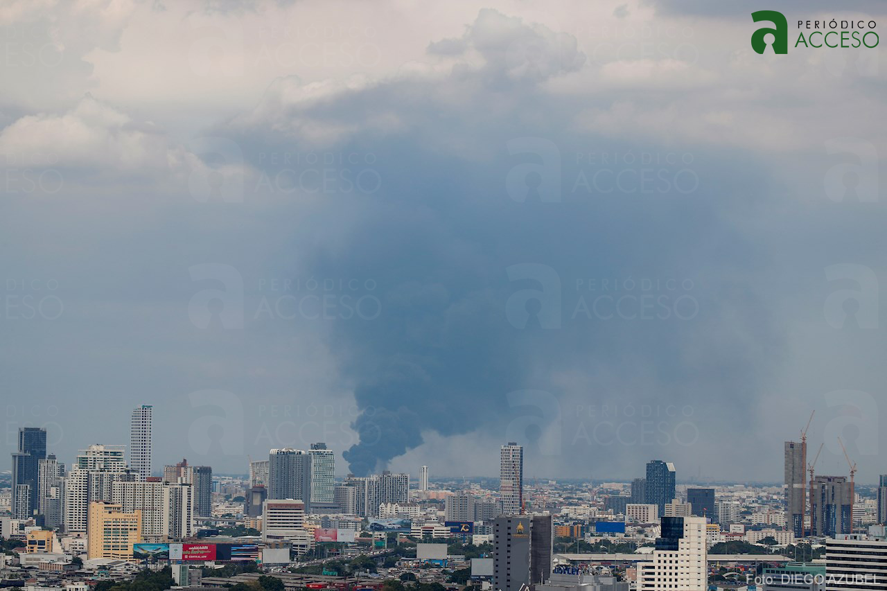 Aunque han controlado parte del incendio, los bomberos, ayudados con helicópteros, continúan luchando contra varios focos de fuego en la fábrica, situada cerca del aeropuerto internacional de Suvarnabhumi.