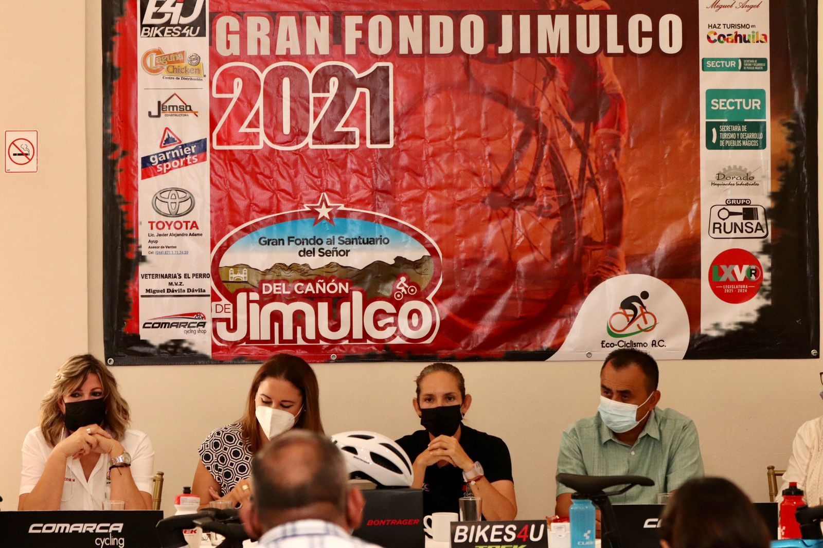 En la rueda de prensa estuvieron presentes la representante de la SECTUR, María Eugenia Villarreal; Alina Garza Herrera, Directora del Instituto Estatal del Deporte de Coahuila (INEDEC); Laura Prado y Pedro Belmonte, de Ecociclismo; el párroco del Cañón de Jimulco, Aurelio González Rodríguez, y Dulce Pereda, síndica del Ayuntamiento de Torreón.