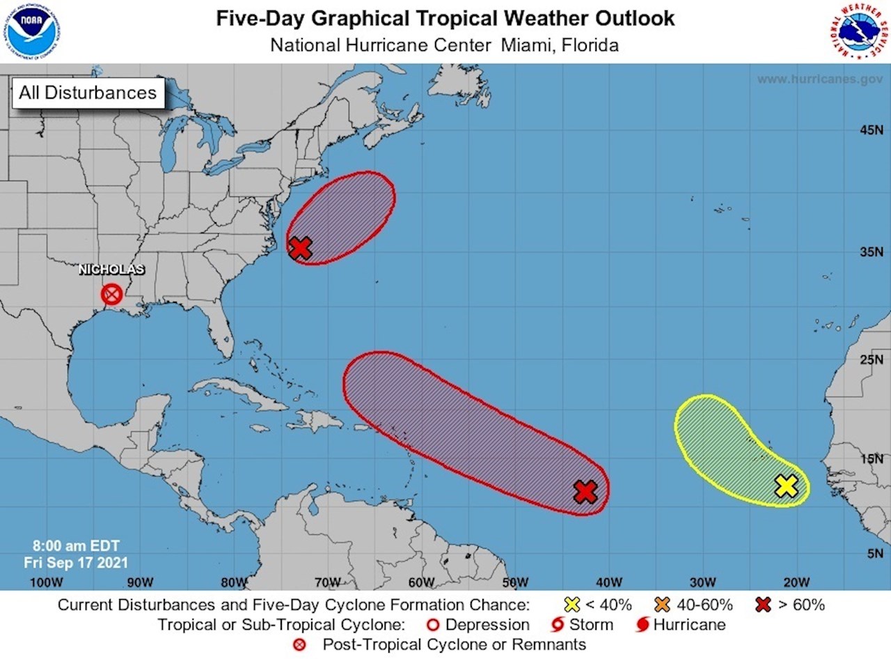 El último de ellos, Nicholas, tocó tierra esta semana en el este de la península de Matagorda, en Texas (EE.UU.), pero rápidamente se debilitó a tormenta tropical.