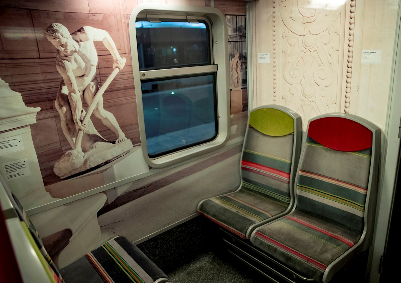 Han sido necesarias 600 horas para transformar los cuatro vagones del Tren París Museos en una exposición rodante con reproducciones de algunas de las obras más emblemáticas del Museo Carnavalet, el Palais Galliera, el Museo de Arte Moderno y el Petit Palais.