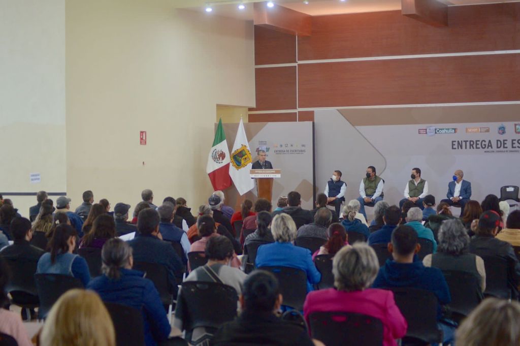 “A partir de hoy son dueños de un pedacito de Coahuila y de México; cada escritura y cada familia es una historia distinta. Hoy, al tenerlo en sus manos, se ve el esfuerzo que hicieron para edificar la vivienda sin descuidar la familia. Hoy reciben este documento y les da seguridad a su patrimonio, siéntanse orgullosos, es producto de su esfuerzo y de todos los funcionarios que están comunicados para atenderlos”, manifestó.