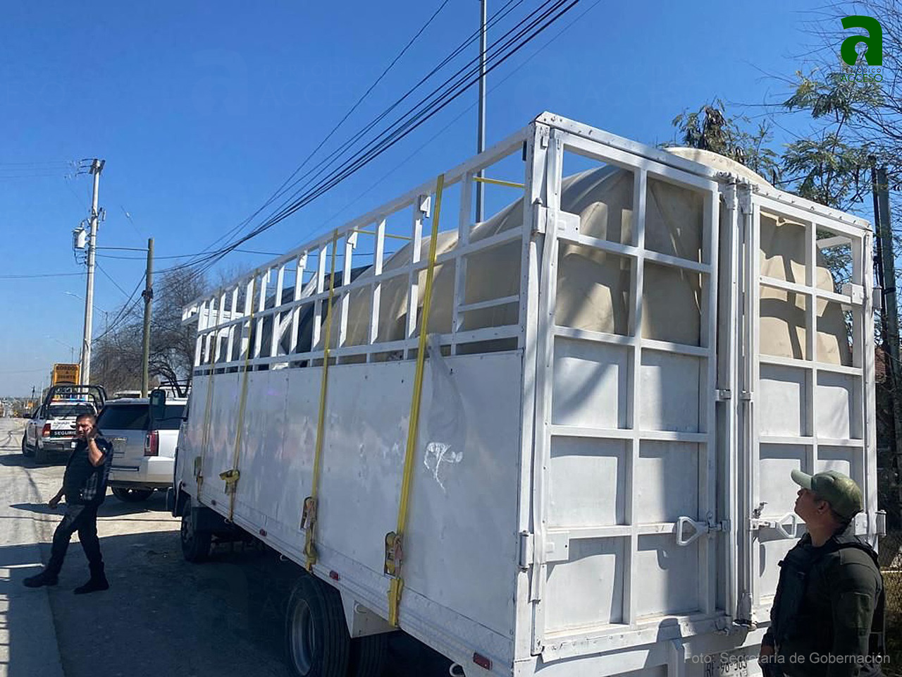 El vehículo de carga fue localizada por la FGR en el municipio de Allende, Nuevo León, cuando se le marcó el alto para una revisión de rutina.