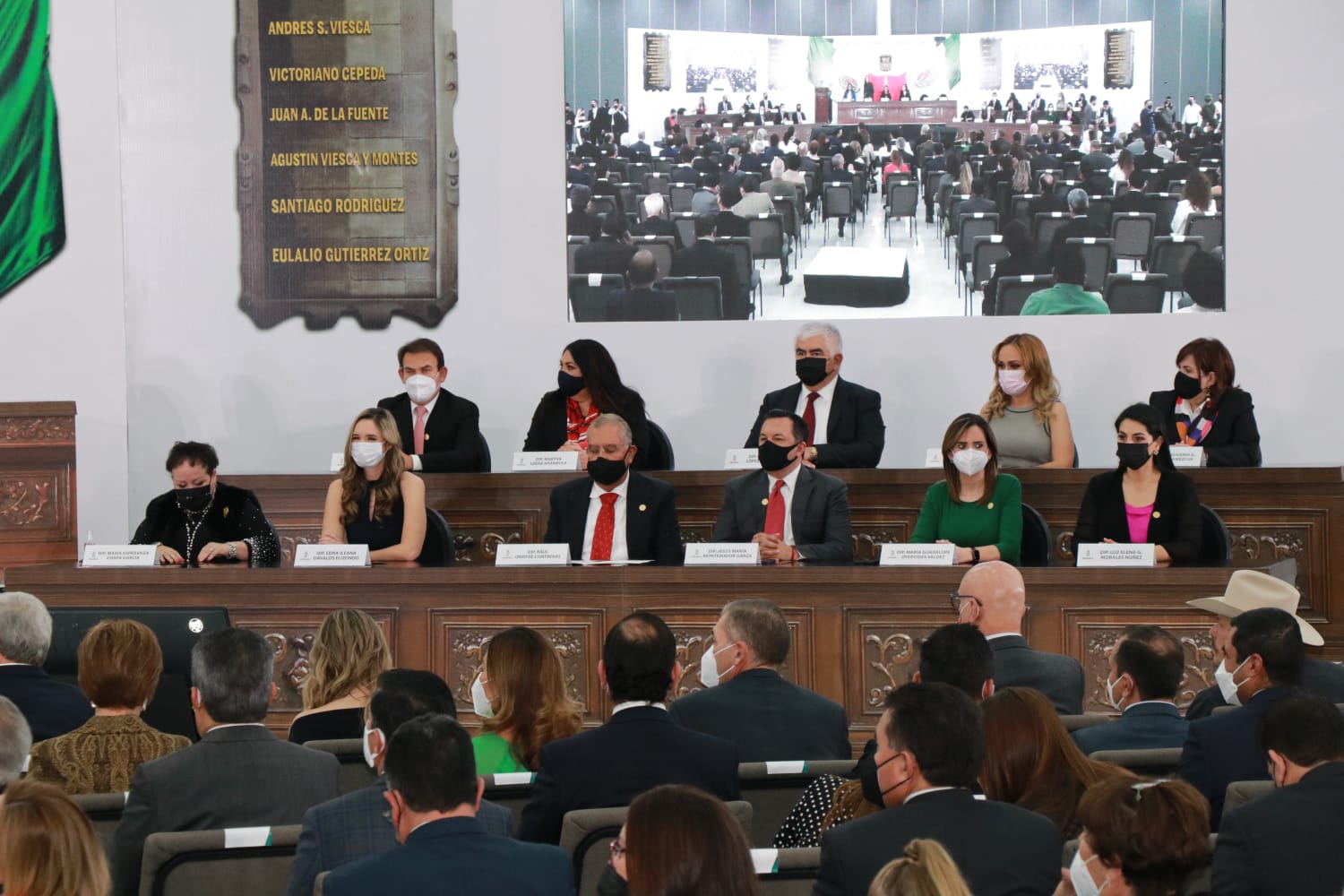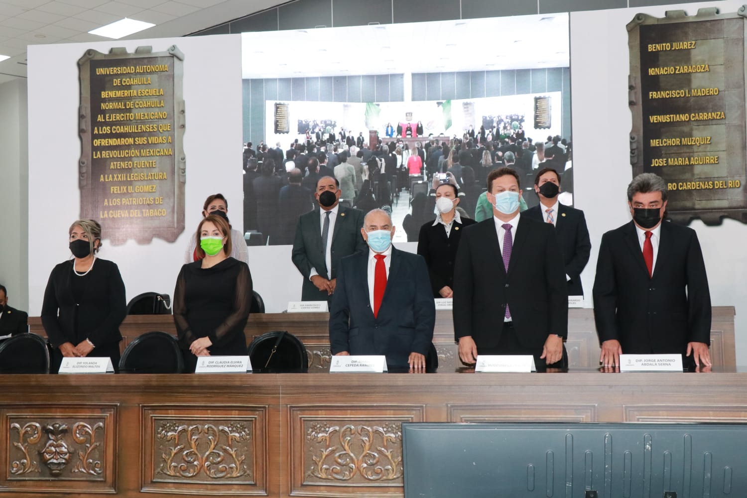 Esta sesión contó con la presencia del gobernador de Coahuila, Miguel Ángel Riquelme Solís, el gobernador de Durango, José Rosas Aispuro Torres, el Presidente del Tribunal Superior de Justicia de Coahuila, Miguel Felipe Mery Ayup, el presidente de la Junta de Gobierno del Congreso del Estado de Coahuila, Eduardo Olmos Castro, el director general de El Siglo de Torreón, C. Antonio González–Karg de Juambelz, la diputada María Bárbara Cepeda Boehringer, presidenta de la Diputación Permanente, así como el total de las diputadas y diputados que integran la Sexagésima Segunda Legislatura, e invitados de honor.